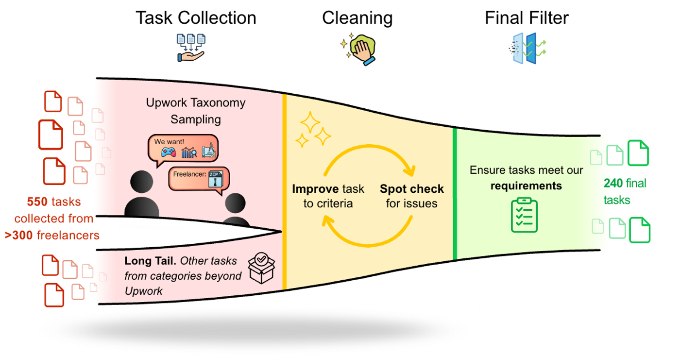 • Scope: 23 Upwork domains (from 64 total), excluding projects requiring physical labor, long-term evaluation, or direct client interaction.