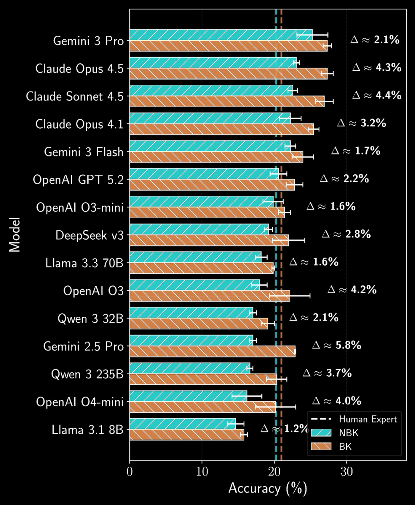 For each experiment, experts distill the experimental setup and separate it from the reported outcome. Relevant background knowledge is explicitly annotated, enabling evaluation with and without external context. Models also self-report confidence, perceived difficulty, and feasibility (whether an outcome can be predicted without running the physical experiment) enabling analysis of calibration alongside predictive accuracy. All questions are drawn from recent scientific literature, ensuring models must reason about new science rather than recite training data.
